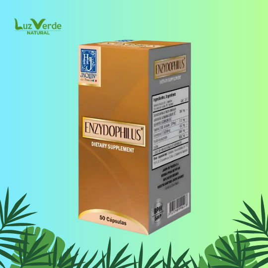 Frasco de 50 capsulas con concentracion de Lactobacillus acidophilus (30mg), papaina (27mg,) bromelina (45mg), inulina (180mg) y fructooligosacáridos(180mg)